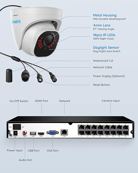 4K Ultra HD – Reolink 4K Ultra HD (8MP, 3840 × 2160) PoE camera delivers almost four times the clarity of 1080p. Our camera kit provides users a vivid display, even when you digitally zoom in. Any flaw or distortion you’ve encountered before has been eliminated, ensuring you the highest quality view of your surroundings.